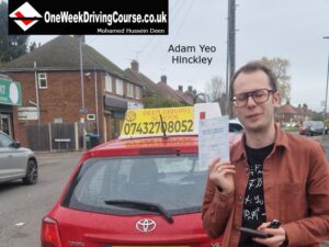 I took my intensive course with Adam in Sale (Manchester) who helped me get my pass after 5 different instructors and a very frustrating 4 years. Adam very quickly identified my driving style and what I was struggling with and was firm and straight to the point in addressing my faults (which was needed with just 4 days to prepare for the test) whilst also maintaining a positive and encouraging attitude. Brilliant experience with One Week Driving Course, even in the run-up to the course starting I received good communication from the company about what would be happening with my course. Would definitely recommend