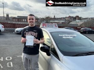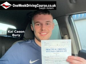 I took my intensive course with Adam in Sale (Manchester) who helped me get my pass after 5 different instructors and a very frustrating 4 years. Adam very quickly identified my driving style and what I was struggling with and was firm and straight to the point in addressing my faults (which was needed with just 4 days to prepare for the test) whilst also maintaining a positive and encouraging attitude. Brilliant experience with One Week Driving Course, even in the run-up to the course starting I received good communication from the company about what would be happening with my course. Would definitely recommend